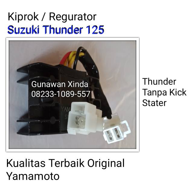 Soket Kiprok Thunder : Jual Kiprok Suzuki Thunder 125 Yamamoto 082331089557 Kab Nganjuk Menjual Spare Part Motor Tokopedia / Yang sering kejadian adalah sepul putus atau konslet, kiprok (rectifier) mati, atau kabel body getas.. Kiprok thunder 125 single regulator. Adapun jalur soket kiprok yamaha new vixion lightning dan yamaha mio j memiliki persamaan, jadi kalian bisa saja saling pasang kiprok antara kedua motor tersebut. Gunakan kabel yang berkualitas tinggi dan soket kiprok harus asli perhatikan juga sambungan pastikan kuat agar tidak terbakar seperti milik saya #kiproktiger, #fullwavesatriaf, #badreethok видео kabel. Memacu motor dengan kecepatan tinggi dalam waktu yang lama membuat kinerja kiprok semakin berat. Sedangkan kabel tambahan yang terhubung ke kabel hitam spul langsung dipasangkan ke regulator tiger #5.